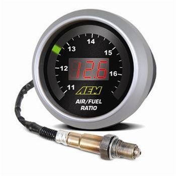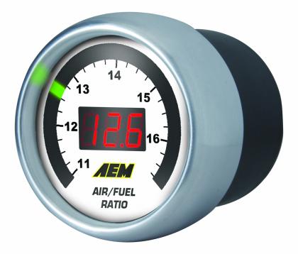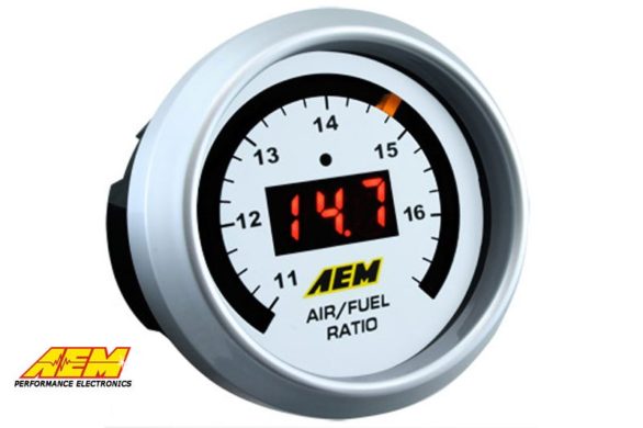 AEM UEGO – Digital Wideband Gauge: A wideband UEGO sensor controller accurately monitors Air/Fuel ratios (AFR) during the tuning process to prevent a lean fuel mixture, which could lead to engine damage. AEM has combined its single-channel wideband UEGO controller and gauge display into one unit, uniting unsurpassed AFR accuracy and control with an easy-to-read interface. AEM’s Gauge-Type Wideband UEGO Controller features a digital LED display and sweeping LED “needle” that changes colors as AFR changes from rich to lean. The unit’s 52mm (2-1/16”) gauge housing fits in most gauge pods and can be remotely mounted virtually anywhere.