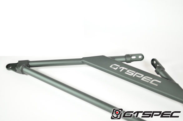 GTSPEC Strut Tower Bar: Strut Tower Braces improve chassis rigidity and reduce flex that strut towers experience during hard cornering. GTSPEC strut tower braces are made with 6061 aluminum, featuring a unique CNC cut connetor. By using the CNC cut connector to attach the center shaft to end plate, the result is more rigidity and able to absorb more force during turns. When taking a turn a car’s strut towers normally flex, resulting in body flex and some traction loss. GTSPEC strut tower bars are designed to keep your strut towers from flexing and distribute the pressure applied to one strut tower when taking a turn to both towers instead of just one. This keeps the wheels in position. By keeping the wheel in position, the car are more predictable and overall improve the responsiveness of the vehicle.