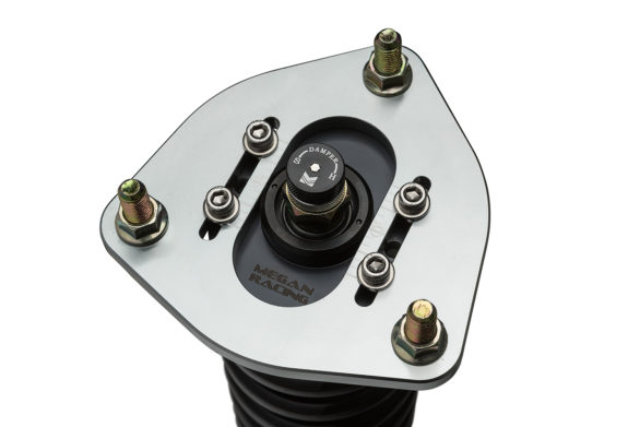 For those who demand the absolute most in handling and performance from their vehicle, Megan Racing has developed a new series of fully adjustable Coil-Over Damper kits for limited applications. The new Track-Series Coil-over Damper Kit surely stands out above the rest with the dependability and performance that Megan Racing suspension products are known for. With a gunmetal finish for the brackets and coated springs for durability, it is apparent that the Megan Racing Track-Series dampers mean business. However, beyond their aggressive appearance stands the true essence of these Dampers. The increased spring rates, mated with more aggressively valved dampers, stiffer shock setting, and heavy-duty piston construction add up to a suspension system that out-performs most competing suspensions that retail for almost twice the price.