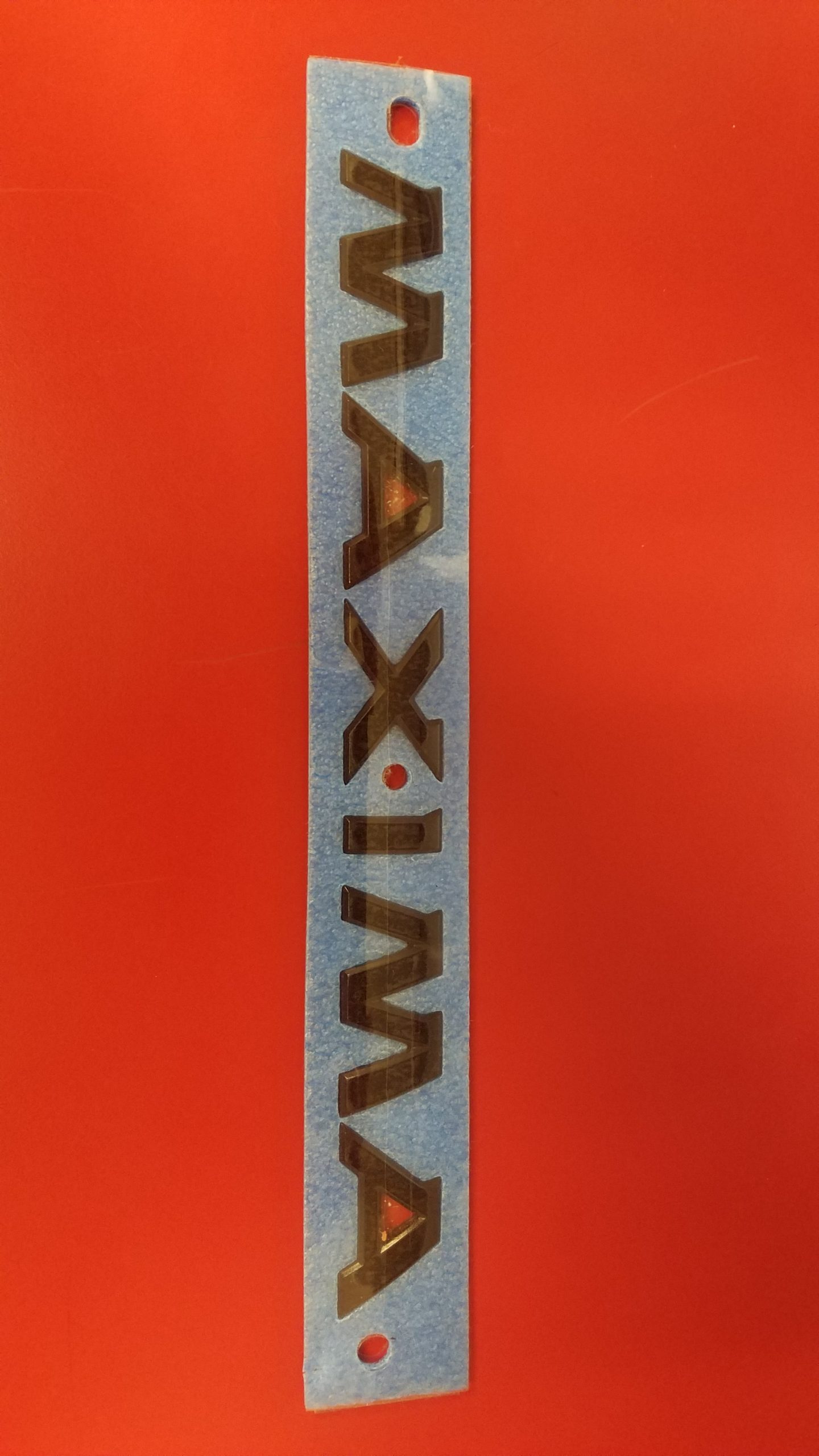 Easy upgrade to your Maxima with this peel and stick emblem.
