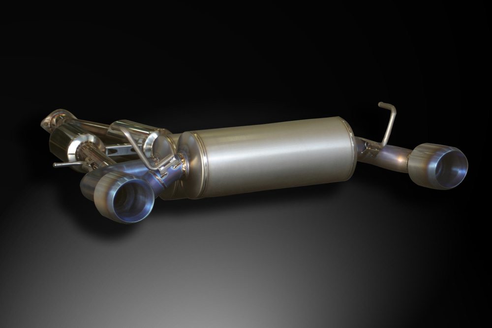 Backed by the exhaust performance theory and numerous tests, the diameters (80 ø- 60 ø x 2 – 110 ø x 2) were carefully determined and an almost perfect equal length design has been achieved. In order to maintain the air flow as similar as possible for each pipe, a new special rear stabilizer was created to replace the stock one. This special stabilizer also provides enough clearance from the ground for your exhaust.