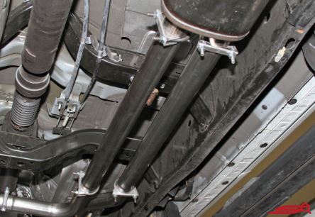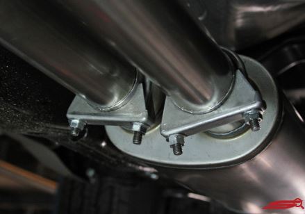The dual mandrel bent 2.5 inch exhaust tubing construction continues all the way to a single muffler. Then exits through a single 3 inch exhaust pipe that finishes with a beautiful polished tip.