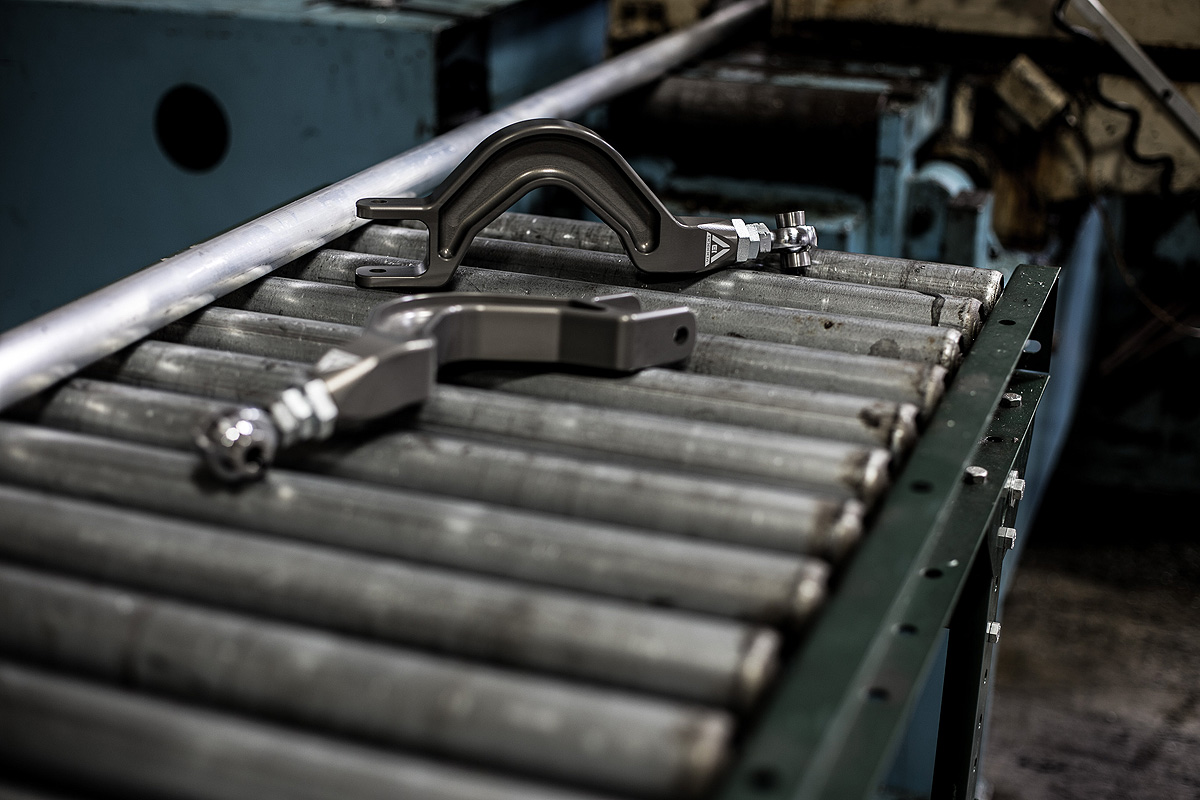 Our Voodoo13 1989-1994 Nissan 240sx rear camber arms feature a fully CNC machined main body from 6061-T6 aluminum. Our design allows the entire assembly to be 10% lighter than the OE part while maintaining superior strength and rigidity. To accommodate for slammed cars where clearance between the body and the upper control is an issue, we designed the part with a 15 degree angle. A wide range of adjustment (5.5 degrees) is provided via our signature chromoly adjusters with QA1 rod ends. Available in raw machine finish and MIL-A-8625 Type III hard anodize.